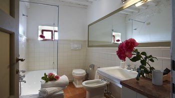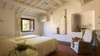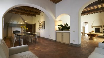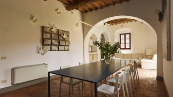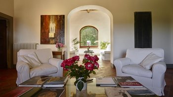 In der Nähe von Florenz im Chianti-Gebiet gelegen, ist Le Cascine eine wunderschöne historische Landvilla, die sich ideal für Gruppenreisen mit Familie und Freunden eignet. Dessen Anwesen wurde wunderschön restauriert und mit einer Kombination aus modernem und authentischem Dekor eingerichtet, gepaart mit charmanten Balkendecken und modernen Kunstwerken. Im Erdgeschoss können die Gäste durch die Eingangshalle gehen, um ein schönes offenes Grundriss Wohnzimmer mit einem Essbereich sowie eine voll ausgestattete Küche zu entdecken, die zur schattigen Essterrasse führt. Zwei Doppelschlafzimmer sind über ein paar Stufen erreichbar, jedes mit eigenem Bad ausgestattet. Im ersten Stock gibt es zwei weitere Orte zum Entspannen: eine Sitzecke und einen Flur mit gemütlichen Sesseln. Vier Doppelschlafzimmer und ein Einzelschlafzimmer sind ebenfalls vorhanden, jedes mit einem Duschbad en suite.