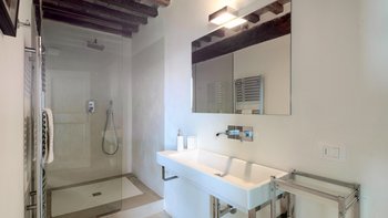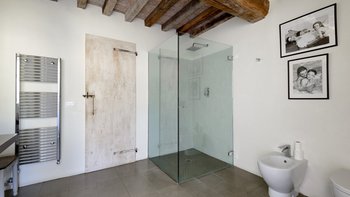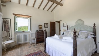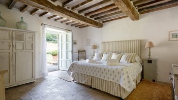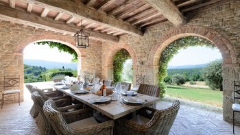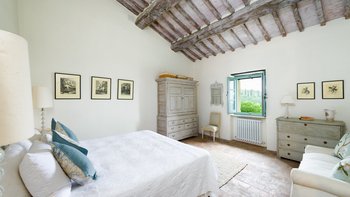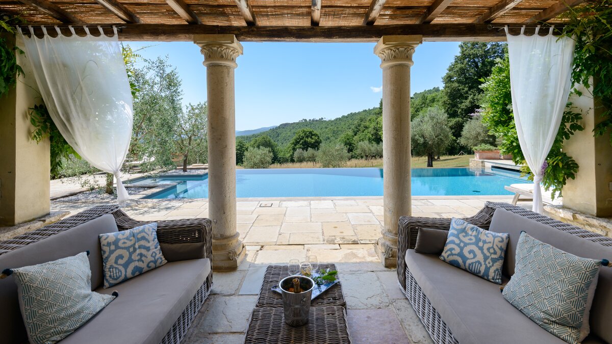 Die Schlafzimmer sind romantisch und individuell gestaltet, mit Himmelbildern und antiken Stücken, während die Badezimmer mit großen, ebenerdigen Duschen und freistehenden oder alten Marmorbädern ausgestattet sind. Dessen Haus bietet den perfekten Rahmen für das Leben im Innen- und Außenbereich und verfügt über eine wunderschöne Loggia zum Sitzen und Essen im Freien. Und in den Gärten führt ein Weg durch Pergola-Bögen zum Infinity-Pool und zum eindrucksvollen Pavillon am Pool. Ein Brunnen oben auf der Wiese stand einst in einem Kloster in Frankreich, ebenso wie der herrliche Torbogen in der Nähe des Swimmingpools. Eingebettet in eine große Privatsphäre, liegt die Villa in der Nähe des Castello di Reschio, das heute als eines der besten Resorts Mittelitaliens bekannt ist. Die Villa ist auch 8 km von den Geschäften und Restaurants in Mercatale und 12 km von Umbertide.