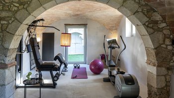 Im Erdgeschoss werden die Gäste von einer großen Eingangshalle mit unverputzten Ziegelsteinen und geschmackvollen Möbeln begrüßt. Des Weiteren gibt es eine voll ausgestattete Küche, ein modernes Esszimmer mit einer Auswahl an Weinen und ein Wohnzimmer mit direktem Zugang zum Außenbereich. Aller Zimmer sind mit gepflegten, historischen Möbeln, die von vergangenen Generationen besessen wurden, und Designer-Touchen mit individuellen Details, die von lokalen Handwerkern erstellt wurden, ausgestattet. Ebenfalls im Erdgeschoss befindet sich ein Fitnessraum, ein Wellnessbereich und ein kleiner Innenpool mit Blick auf die gepflegten Gärten.