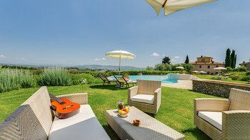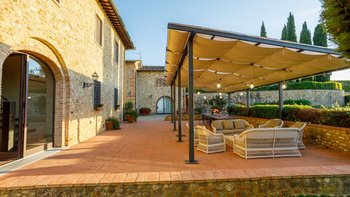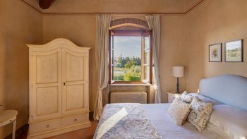 Es gibt acht Schlafzimmer in den ersten Stockwerken, bestehend aus sechs Doppelzimmern und einem Zweibettzimmer, jeweils mit Bad en Suite und herrlichem Weitblick, sowie ein Familienzimmer mit einem Schlafzimmer mit Doppelbett, einem Zweibettzimmer und einem Gemeinschaftsbad. Einem hellen und luftigen Wohnzimmer und einem TV-Raum vervollständigen diese Etage. Des untere Stockwerk bietet zusätzlichen Luxus, wo die Gäste einen Indoor-Jacuzzi und eine Sauna, einen Fitnessraum und einen Massageraum genießen, wo Behandlungen auf Anfrage von einem Masseur arrangiert werden können. Es gibt auch einen Umkleideraum mit Dusche für den Komfort der Gäste. Wenn es um die Lage geht, ist die Villa Chiantisol der perfekte Ort für einen ruhigen Rückzugsort mit Geschäftenund Restaurants und Annehmlichkeiten in Tavarnelle Val di Pesa nur 2 km entfernt; Florenz, Siena, San Gimignano, Volterra und Certaldo sind ebenfalls mit dem Auto erreichbar.