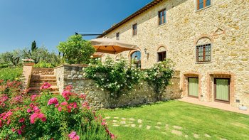 Der Zugang zur Villa Chiantisol erfolgt über eine auffällige Auffahrt, die von schönen Rosen gesäumt ist, während die umliegende Landschaft ein üppiges Meer aus grünen Hügeln und kaskadierenden Weinbergen ist. Der Wohnbereich im Freien ist ebenfalls ziemlich spektakulär, mit einem versunkenen nierenförmigen Pool und erhöhtem Außen-Jacuzzi gepaart mit Sonnenliegen und Sonnenschirmen sowie weiteren bequemen Sitzgelegenheiten, um im Freien zu entspannen und den ruhigen Panoramablick zu genießen. Deren Unterkunft erstreckt sich über drei geräumige Etagen, wobei im Erdgeschoss ein OFFENER GRUNDRISS Wohnbereich mit einer charmanten Küche im Landhausstil in warmen Terrakotta-Tönen eingerichtet ist, der Hauptwohn- und Essbereich mit einem Tisch, an dem alle Gäste gemeinsam speisen können, sowie eine separate Hauptküche. Ein Schlafzimmer mit Doppelbett und ein weiteres WC runden diese Etage ab.