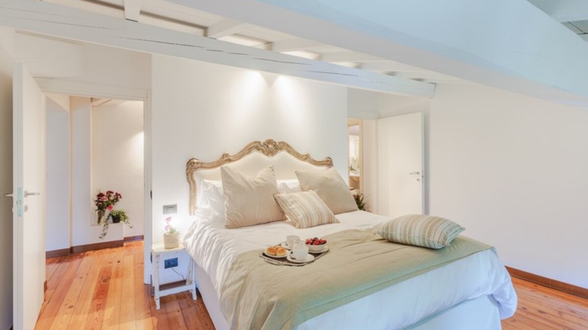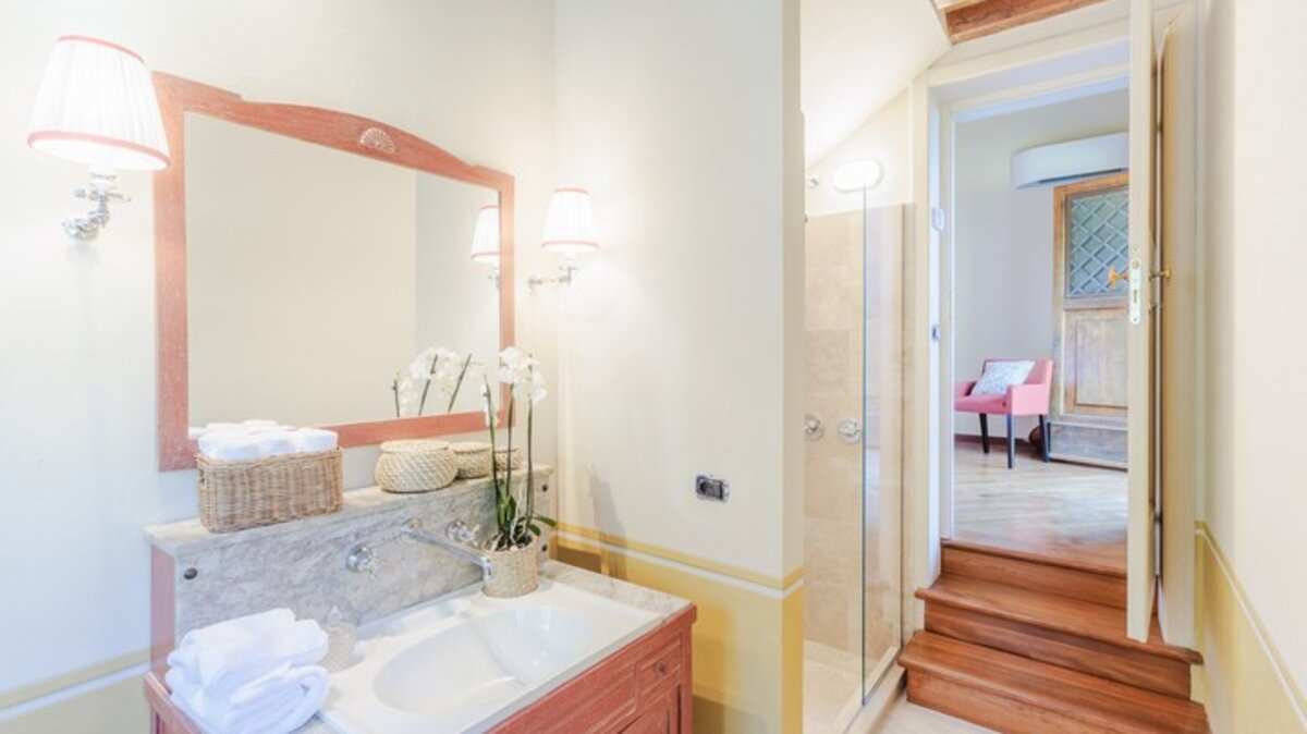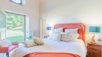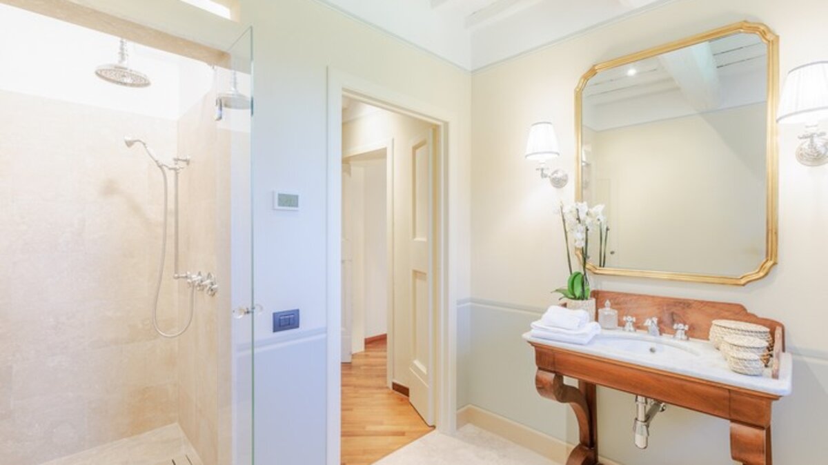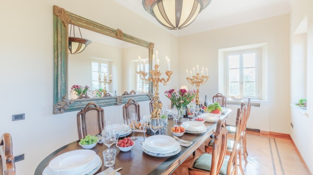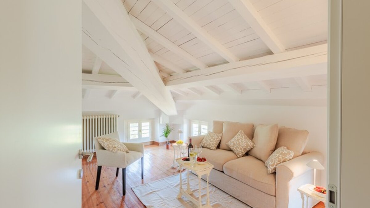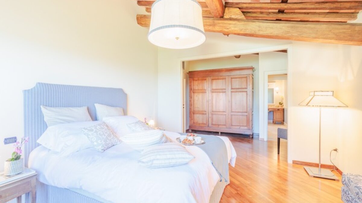 Die Villa bietet Platz für bis zu 10 Personen in fünf elegant eingerichteten Schlafzimmern, die jeweils über ein eigenes Bad verfügen. Deren Innenräume verfügen über originale architektonische Details wie rustikale Holzbalken und historische Böden, gepaart mit geschmackvollen Möbeln und natürlichen Materialien. Ein zusätzliches Schlafsofa ist auf Anfrage erhältlich und bietet somit Flexibilität für Familien.