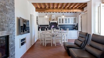 Im Herzen der Landschaft von Lucca gelegen, verbindet die Villa Sofia traditionellen Stil mit modernen Einrichtungen und schafft einen idealen Rahmen für eine Familie oder eine Gruppe von Freunden. Eine schöne Terrasse mit Blick auf den privaten Infinity-Pool, während eine Pergola am Pool den perfekten Ort zum Entspannen bietet, während Sie über die sanften Hügel blicken. Deren Erdgeschoss besteht aus einer klassischen Küche mit frischem weißem Dekor und Holzbalkendecken, neben einem offenen Ess- und Sitzbereich, ergänzt durch ein Schlafzimmer mit Doppelbett und Dusche im antiken Stil. Deren obere Ebene besteht aus einem Schlafzimmer mit Doppelbett, einem Schlafzimmer mit zwei Einzelbetten und einem Badezimmer mit Dusche im „rustikal chic“ Stil. Umgeben von bewaldeten Hügeln und Olivenhainen ist dieses Anwesen vollkommen privat, aber dennoch leicht erreichbar, nur 2 km von allen Annehmlichkeiten, Geschäften und Restaurants in Santa Maria del Guidice und nur 4 km von San Giuliano Terme entfernt.