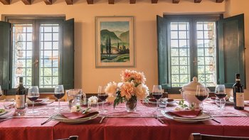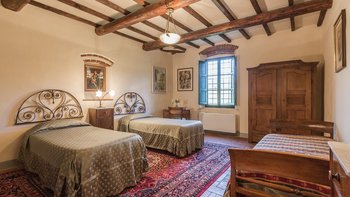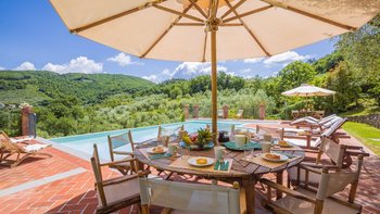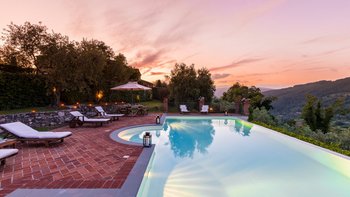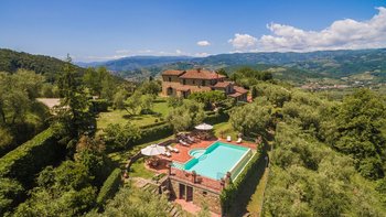 Versteckt an den Hängen des Mount Albano, ist diese luxuriöse Villa ideal für größere Gruppen oder Familien. Ehemals zwei originale Bauernhäuser, die liebevoll zu einem mondänen Ferienort auf dem Land restauriert wurden, gibt es einen Fünf-Sterne-Blick auf die klassische toskanische Landschaft aus fast jedem Blickwinkel. Der Infinity-Pool befindet sich auf einer natürlichen Terrasse direkt unter der Villa und blickt auf die hügelige Waldlandschaft. Dieser private Genuss ist exklusiv in der Villa und wird von einer riesigen Sonnenterrasse begleitet – erwarten Sie Sonnenschirme, Liegestühle und eine Auswahl an verschiedenen Entspannungsplätzen, die Sie erkunden können. Der Besitzer hat eine Leidenschaft für Antiquitäten – von Jugendstilmöbeln über antike Drucke und bis hin zu Truhen aus dem 16. Jahrhundert – im Inneren des Hauses zeigt sich diese Liebe zu schönen Möbelstücken und es gibt auch eine hervorragende Sammlung von Drucken. Im Erdgeschoss gibt es zwei Küchen in jeder Hälfte, die für größere Freunde oder Familienfeiern geeignet sind – obwohl sie traditionell sind, bieten sie dennoch allen Komfort. Für erholsame Abende stehen zwei geräumige Lounges zur Verfügung. Zu den weiteren herausragenden Merkmalen gehören ein moderner Fernseh-/Musikraum und sogar ein Billardzimmer mit einem Tisch aus dem frühen 20. Jahrhundert. Jedes der sieben Schlafzimmer im Obergeschoss hat seinen eigenen Stil und reicht von geräumigen Kingsize- und Zweibett- bis hin zu Dreibetten und Einzelbetten auf Mezzanine-Ebene. Deren Aufteilung mit zwei Schlafzimmern, die über separate Treppen erreichbar sind, ist ideal für zwei Familien.