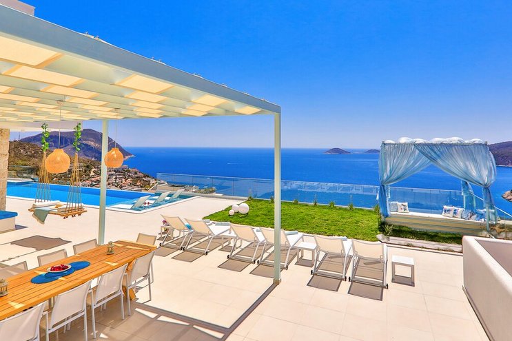 Die Villa Caria liegt in einer abgeschiedenen Gegend oberhalb von Kalkan mit herrlichem Panoramablick und verfügt über alle Einrichtungen für einen fabelhaften Urlaub, darunter ein großer Privater Pool, ein Kinderbecken und ein fantastischer Spielplatz.