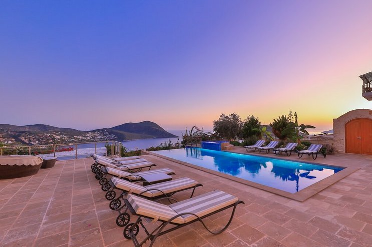 Auf einem Hügel mit herrlichem Blick auf die wunderschöne Bucht von Kalkan gelegen, erfüllt die Villa Ecrin alle Voraussetzungen für eine erholsame Woche in der Türkei.