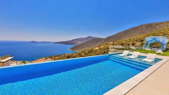 Diese Villa ist wunderschön für das Leben im Freien konzipiert und bietet viel Platz zum Entspannen, Essen und Sonnenbaden. Besuchen Sie den großen Pool mit Liegestühlen über dem Wasser oder nehmen Sie einen Schlummertrunk auf der bequemen Liege. Deren Villa verfügt auch über einen großen Esstisch im Freien, an dem Sie in der Sommersonne im Freien speisen können. Eine große Auswahl an Geschäften, Restaurants und Cafés finden Sie im Zentrum von Kalkan, nur 2,3 km von der Unterkunft entfernt. Zu den lokalen Sehenswürdigkeiten gehören Berzigan und die faszinierenden antiken Überreste von Patara. Badebegeisterte werden den Kieselstrand von Kalkan sowie einen Drink im Kalamar Beach Club lieben. Der nächste Flughafen ist Dalaman, 140 km entfernt.