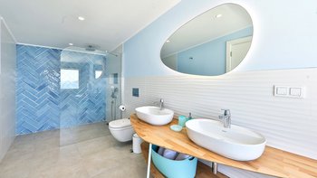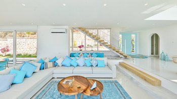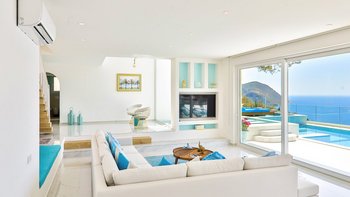 Die Villa Bella Mare liegt am Ende der Straße in einem Gebiet von üppigem Grünes und ist ein wunderschönes, ruhiges und privates Anwesen. Dieser Neubau ist unglaublich modern und geräumig, mit einem hellen und luftigen Gefühl. Dessen Villa blickt auf das Meer und bietet einen außergewöhnlichen Panoramablick, den man am besten vom Privater Pool aus bewundern kann. Im Inneren finden die Gäste eine große, offene Küche, einen Wohn- und Essbereich. Jedes Zimmer ist frisch und weiß, mit fröhlichen Blau- und Grüntönen. Im Erdgeschoss befindet sich auch ein Schlafzimmer mit Doppelbett und Dusche en suite. Gehen Sie nach oben, um das exquisite Hauptschlafzimmer zu entdecken, das mit einem schönen großen Bett und einer freistehenden Badewanne ausgestattet ist. Dieses Zimmer verfügt über ein eigenes Bad und Zugang zu einem eigenen Balkon mit Meerblick. Auf dieser Etage befinden sich auch ein Schlafzimmer mit Doppelbett und ein Zweibettzimmer, die jeweils mit einem eigenen Bad mit Dusche und Zugang zu einem eigenen Balkon ausgestattet sind. Dessen Villa ist ideal für Familien und umfasst auch ein Spielezimmer mit einem Smart-TV und einem Billardtisch.