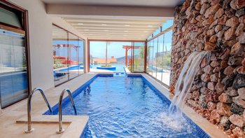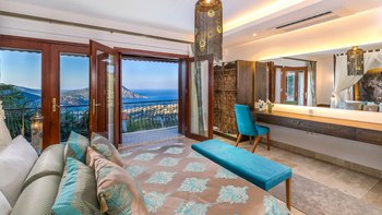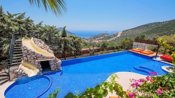 Die Villa Caria liegt in einer abgeschiedenen Gegend oberhalb von Kalkan mit herrlichem Panoramablick und verfügt über alle Einrichtungen für einen fabelhaften Urlaub, darunter ein großer Privater Pool, ein Kinderbecken und ein fantastischer Spielplatz.