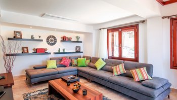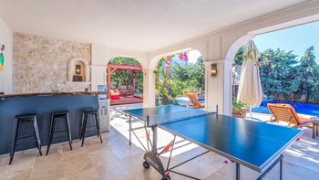Die Villa Caria ist eine vollkommen private Villa, umgeben von schönen, hellen Bougainvillea, die über eine private Zufahrt erreichbar sind. Deren Villa verfügt über eine Reihe von Einrichtungen, darunter ein wunderbarer Kinderspielplatz mit Schaukeln im Innen- und Außenbereich, ein Baumhaus und eine Kletterwand, so dass die Kinder während des gesamten Urlaubs unterhalten werden können, während jeder den Spiel- und Kinoraum nutzen kann.