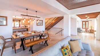 Im Inneren des geräumigen Hauses befindet sich ein offener Wohn- und Essbereich mit Falttüren, die zu einer voll ausgestatteten Küche mit Theke führen. Aller vier Schlafzimmer verfügen über ein eigenes Bad, eines davon mit dem Luxus einer Jacuzzi-Badewanne für ultimativen Genuss.