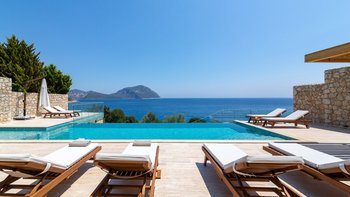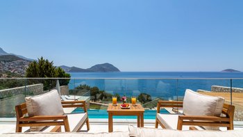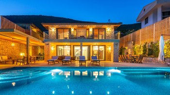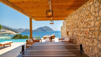 Die moderne und geräumige Unterkunft Villa Kenar in Kalkan bietet viel Platz zum Entspannen und Unterhalten. Sie bietet direkten Zugang zum Strand.