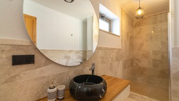 Das Anwesen ist Teil einer Anlage zusammen mit 5 anderen Immobilien, die sich gut für größere Gruppen in jeder Kombination der Villen eignen und alle 6 können zusammen gebucht werden (je nach Verfügbarkeit). Denen 6 Villen umfassen Villa Sahil, Villa Kenar, Villa Keyali, Villa Akim I, Villa Akim II und Villa Akim III.