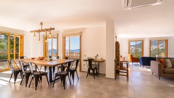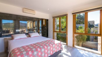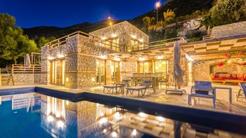 Stilvoll, geräumig und sehr schick mit Meerblick, besteht die Villa Malikani aus zwei separaten Gebäuden am Rande der charmanten Altstadt von Kalkan. Weniger als fünf Minuten zu Fuß von köstlichen lokalen Restaurants, verwinkelten Gassen und einem kleinen Kieselstrand hebt sich diese wunderschöne Steinimmobilie sicherlich von den traditionellen weiß getünchten Häusern dieser Hangbucht ab. In dieser eleganten Villa mit vier Schlafzimmern dreht sich fast alles um den Meerblick – jede Terrasse, jeder Sitzplatz oder Ruhebereich im Freien ist eine komplette Sonnenfalle und alle sonnen sich in einem ungestörten Blick auf das Mittelmeer. Ein wunderschöner Infinity-Pool mit Liegestühlen und Sonnenschirmen, ein Jacuzzi/Schwimmbecken und ein Gasgrill für warme Mahlzeiten im Freien vervollständigen den weitläufigen Gartenbereich des Anwesens.