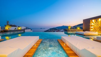Mit einem atemberaubenden Blick auf das Meer und über Kalkan ist die Villa Yildiz eine beeindruckende, moderne und geräumige Unterkunft, die sich ideal für große Gruppen und Familien eignet.