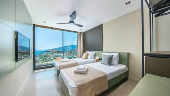 Diese Etage verfügt über ein Kingsize-Doppelzimmer mit stilvollem en-suite Duschbereich, das nahtlos in das Schlafzimmer integriert ist und ein modernes, offenes Design bietet. Es gibt auch ein Zweibett-Schlafzimmer mit Dusche en-suite. Auf der ersten Etage befinden sich drei helle und luftige Schlafzimmer mit jeweils einem Duschbad en-suite und einer außergewöhnlichen Aussicht auf Kalkan.