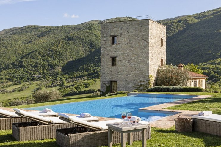Diese luxuriöse 'Villa’ in Umbrien ist ein fantastischer Ort für eine besondere Feier. Sie besteht aus fünf Gebäuden, die einen ganzen Weiler bilden, hoch in den Hügeln mit geräumigen, schön eingerichteten Zimmern, vielen Plätzen in der Sonne oder im Schatten, einer Auswahl an Einrichtungen und einem Concierge und.