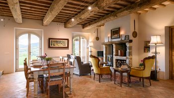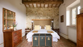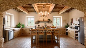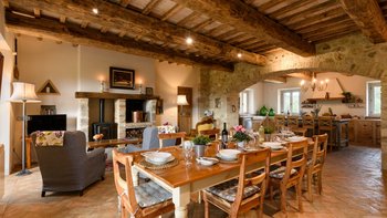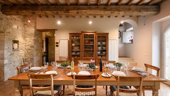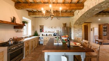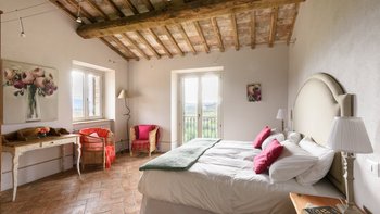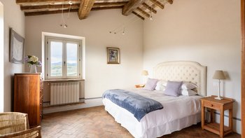 Casa Canaiolo ist ein Rückzugsort rustikaler Eleganz – und hat die perfekte Größe für eine Gruppe von Freunden oder die Familie. Rustikaler Charme verkörpert die authentische Erfahrung Umbriens, aber es gibt auch die perfekte Menge an modernem Stil für einen luxuriösen Aufenthalt. Denen Villa verfügt über vier Schlafzimmer mit eigenem Bad. Denen Gäste lieben, dass jedes Zimmer einen Blick über das Tal hat und gleich groß ist, mit geräumigen Duschbädern. Drei befinden sich im ersten Stock und eines im Erdgeschoss, aber alle sind Super-Kingsize, mit der Möglichkeit, bei Bedarf als Zwillinge geschminkt zu werden. Im ersten Stock haben zwei Schlafzimmer Zugang zu einer traditionellen Steinloggia (eine überdachte offene Galerie), ein großartiger Ort, um die Aussicht mit bequemen Sitzgelegenheiten zu genießen. Im Erdgeschoss befindet sich der OFFENER GRUNDRISS Wohn-, Ess- und Gourmet-Küchenbereich – hervorragend ausgestattet mit allem Komfort der Spitzenklasse und einem großen Esstisch für 10 Personen für köstliche Mahlzeiten, die in der Villa zubereitet werden. Ein großer Teakholz-Tisch und ein traditioneller Pizzaofen befinden sich auch auf der angrenzenden Außenloggia – mit Blick auf die freie Aussicht auf die Landschaft ist diese Umgebung perfekt für ein sommerliches Abendessen im Freien.