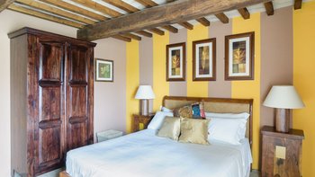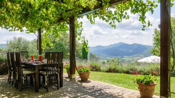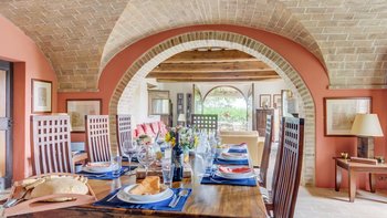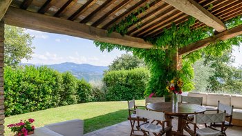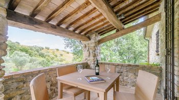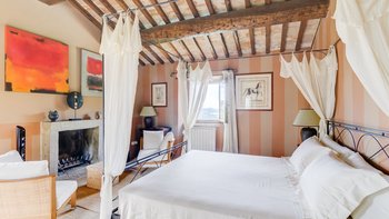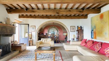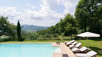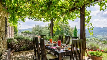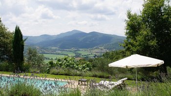 Diese wirklich einladende Luxusvilla mit spektakulärem Blick von ihrer hohen Erhebung auf fünfhundert Meter über dem Meeresspiegel blickt über das Niccone-Tal bis zum Gipfel des Monte Acuto. In einer guten Position für die Erkundung Umbriens und der Toskana sind Perugia, Assisi, Siena und die Chianti-Weinberge für einen Tagesausflug leicht zu erreichen. Der Golfplatz Antognolla und die Wassersportmöglichkeiten am Trasimenischen See sind jeweils nur 30 km entfernt. Es ist zwar schön zu wissen, welche Möglichkeiten zur Verfügung stehen, aber das Haus leistet gute Arbeit, um pure Entspannung zu fördern, vor allem, wenn ein Kochservice hinzukommt. Das Erdgeschoss der Villa wurde von ihrem britischen Innenarchitekten zu einem sehr hohen Standard restauriert und besteht aus einem Trio von Räumen, die durch breite Bögen unterteilt sind. Deren Küche trifft auf den zentralen gewölbten Essbereich, der zu den riesigen Balken, dem großen Kamin und den Designer-Sofas des Wohnzimmers führt, von wo aus Doppeltüren auf eine überdachte Terrasse führen. In den oberen Stockwerken befinden sich vier wunderschön eingerichtete Schlafzimmer mit eigenem Bad. Und es gibt einen gut proportionierten Pool in Gärten mit Pinien-, Feigen- und Granatapfelbäumen. Es gibt eine Auswahl an familiengeführten lokalen Restaurants in der umliegenden Landschaft und gehobenen Restaurants im international bekannten Castello di Reschio. Il Molino ist 5 km von einem kleinen Geschäft in Spedalicchio, mit weiteren Annehmlichkeiten in Mercatale und 15km von einer großen Auswahl an Annehmlichkeiten in Umbertide entfernt. Es gibt auch Weinprobe vor Ort oder weiter weg in den Weinzentren von Torgiano und Montefalco und.