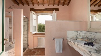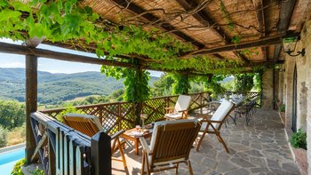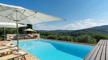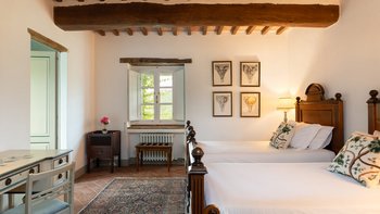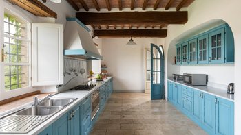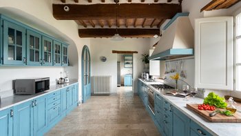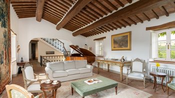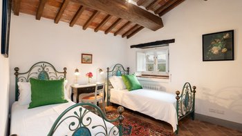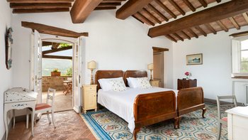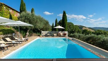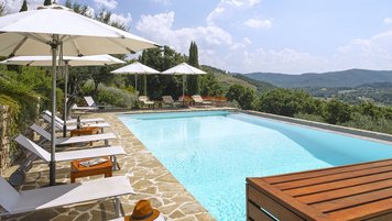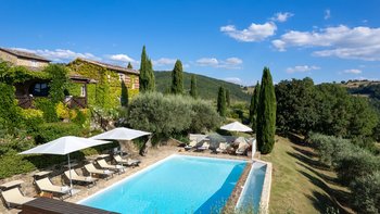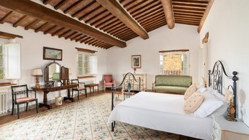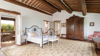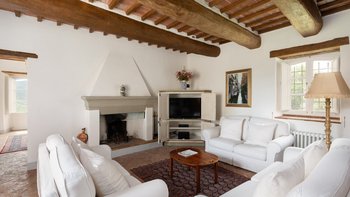 Dieses wunderschön umgebaute Bauernhaus mit einem 360-Grad-Blick auf den Apennin liegt an der Grenze zwischen Umbrien und der Toskana, in einer Landschaft, die sich seit Jahrhunderten nicht verändert hat. Mit viel Platz im Haus und auf dem Grundstück ist es eine ausgezeichnete Familienvilla, mit einer flexiblen Mischung aus Doppel- und Zweibettzimmern und einer Reihe von Einrichtungen wie ein Privater Pool und ein Tennisplatz, ein Arbeitszimmer mit WLAN und ein Steinway-Flügel im Wohnzimmer. Elegant und verziert unter den Holzbalkendecken ist die Villa im eleganten italienischen Stil eingerichtet und bietet sehr hohe Standards. Jedes der sechs Schlafzimmer befindet sich im Haupthaus, ebenso die Küche, das Wohn- und Esszimmer und ein Fernsehraum/Bibliothek.