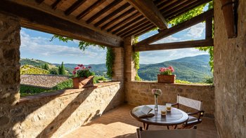 Auf einem Hügel zwischen Umbrien und der Toskana bietet dieses renovierte Bauernhaus einen seit Jahrhunderten unberührten Panoramablick auf den Apennin. Umgeben von zeitlosen Landschaften ist es ein perfekter Rückzugsort für Naturliebhaber.