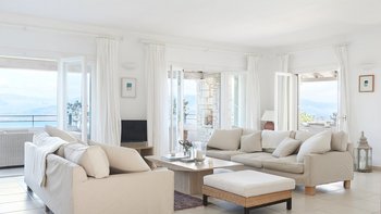 Mit komfortabel eingerichteten Terrassen, die Wohn- und Esszimmer im Freien bilden, und schickem Interieur mit Dekor und Stoffen in sanften Cremetönen, ist dies eine geräumige Familienvilla in einer atemberaubenden Landschaft. Der Erdgeschoss der Villa befindet sich auf drei Ebenen in den Hang und verfügt über eine stilvolle Küche und das große und schöne Wohnzimmer, von dem aus Türen auf die Terrassen und den Pool und Pool führen. Jedes der Schlafzimmer verfügt über eine Klimaanlage und drei haben ein eigenes Bad oder eine Dusche, das erste Stockwerk hat einen doppelten Zugang zu einem privaten Rundum-Balkon, während die Zimmer im unteren Erdgeschoss Flügeltüren zu einer ruhigen Gartenterrasse unterhalb des Infinity-Pools der Villa haben. Tischtennis sorgt für sportliche Unterhaltung; ein im Voraus buchbarer Kochservice könnte zum mühelosen Leerlauf ermutigen; und Spaziergänge durch die umliegenden Olivenhaine sind oft in Begleitung von kleinen Vögeln und Eidechsen, die in ihrer ungestörten Umgebung furchtlos sind. Sinies, 800 m vom Haus entfernt, hat einen ausgezeichneten Dorfladen, Bäckerei und Fischladen. Denen Strände und Tavernen von Avlaki und Kassiopi sind nur 3 km entfernt.