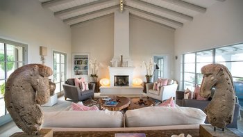 Erdige Kreide- und Lehmtöne bilden eine gedämpfte Kulisse für üppige Stoffe und eklektische Kunstwerke, zeitgenössische Möbel werden mit Vintage-Stücken versetzt. Mit den Dienstleistungen einer Haushälterin verfügt die Villa über fünf Schlafzimmer mit Bad, einen Fitnessraum, ein Büro, eine luftige Küche / Wohn- / Esszimmer und ein entspannendes TV / Wohnzimmer.