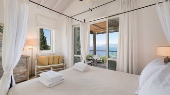 Ein herrliches Haus in einer atemberaubenden Umgebung direkt über dem Meer, diese Luxusvilla auf Korfu ist geschickt entworfen, um sehr modernen Komfort mit bezauberndem Inselcharakter zu verbinden.
