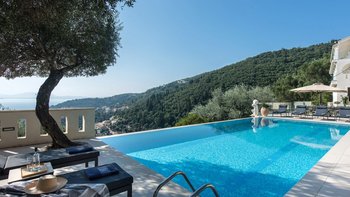 Diese familienfreundliche Villa auf Korfu mit atemberaubendem Blick vom großen Infinity-Pool befindet sich in einer idyllischen Umgebung für diejenigen, die dem Alltag entfliehen möchten.