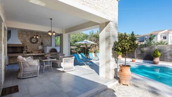 Villa Meraki ist eine atemberaubende, moderne Villa in einer fantastischen Lage direkt im Herzen von St. Stephano, nur wenige Minuten zu Fuß von einer Auswahl an Restaurants, Geschäften und dem Strand entfernt. Dieser perfekt dimensionierte Villa im Zentrum des Dorfes verfügt über einen schönen PRIVATER POOL und eine attraktive überdachte Terrasse mit Essen im Freien, Grill und Pizzaofen für Mahlzeiten im Freien und Sundowners. Dieser Villa ist wunderschön und hochwertig eingerichtet und verfügt über ein offenes Wohnzimmer und eine stilvolle Küche mit direktem Zugang ins Freie, ein Schlafzimmer mit Doppelbett und einen Hauswirtschaftsraum im Erdgeschoss. Alle drei Schlafzimmer verfügen über ein eigenes Bad mit Dusche. Im ersten Stock befindet sich ein wunderschönes Hauptschlafzimmer mit Doppelbett, das zu einem großen privaten Balkon führt, und ein Schlafzimmer mit Doppelbett mit eigener Terrasse. Der Strand von St. Stephano ist nur fünf Minuten zu Fuß von der Villa entfernt, die Strände von Kerasia und Avlaki sind nur eine kurze Autofahrt entfernt und Kassiopi mit all seinen Annehmlichkeiten nur 5,8 km von der Unterkunft entfernt.