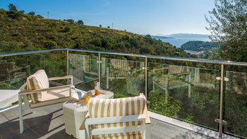 In einer zeitlosen Landschaft aus hohen Zypressen, verdrehten Oliven und anmutigen Eukalyptusbäumen strahlt diese beeindruckende Villa Stil und Qualität aus und prägt ihre klassische korfiotische Umgebung sehr modern.