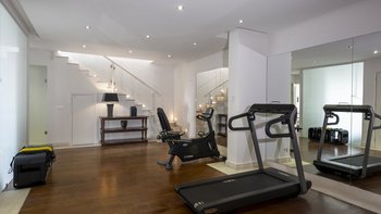• Elixir Spa Galerie Fitnessraum: mit Laufband, Heimtrainer, Bauchbank für den unteren Rücken, Multi-Maschine, Sauna, Dampfbad, beheizter Außenjacuzzi, Massageraum