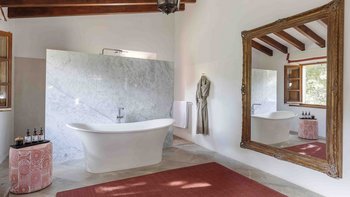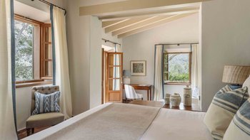Jedes der fünf Schlafzimmer des Sa Punta verfügt über ein hervorragendes eigenes Bad und eine eigene Terrasse, und alle Wohnbereiche sind klimatisiert. Innerhalb der Gärten schließt sich ein 15 m langer beheizter Pool von einer atemberaubenden Bar an. Innerhalb der Villa umrahmen weiße Wände, Holzbalkendecken und weiche Fliesenböden die schicke Einrichtung im Landhausstil in gedämpften neutralen Farben. Zwischen den beiden liegen überdachte Terrassen, die bequem für das Leben im Freien eingerichtet sind.