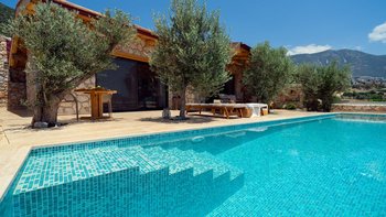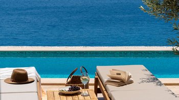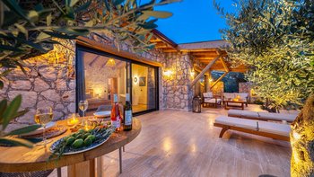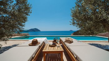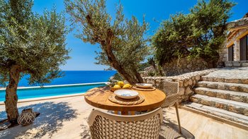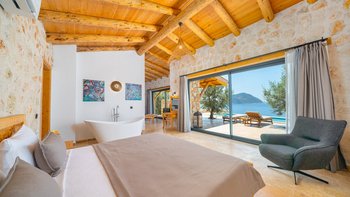 Villa Akim I ist stilvoll und anspruchsvoll mit einem Infinity-Pool und direktem Strandzugang – der perfekte Ort für Paare, die in Kalkan Urlaub machen.