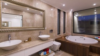 Die Villa Kalamar erstreckt sich über drei Ebenen und umfasst ein unabhängiges Nebengebäude im unteren Erdgeschoss mit einem Schlafzimmer und einem Bad, ideal für Teenager oder Großeltern. Im Haupthaus befinden sich vier weitere Schlafzimmer, die sich über das Erdgeschoß und die ersten Stockwerke verteilen. Jedes Schlafzimmer im Haupthaus öffnet sich auf einen Balkon mit Blick auf die Bucht von Kalamar, während die Zimmer im ersten Stock mit großzügigen Einbauschränken ausgestattet sind.