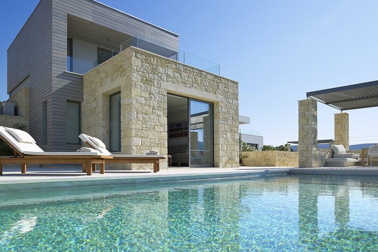 Die Villa Royal ist ein modernes Refugium in Hanglage mit herrlichem Meerblick und bietet eine ruhige Abgeschiedenheit und einfachen Zugang zu den Stränden und der zerklüfteten Küste im Westen Kretas.