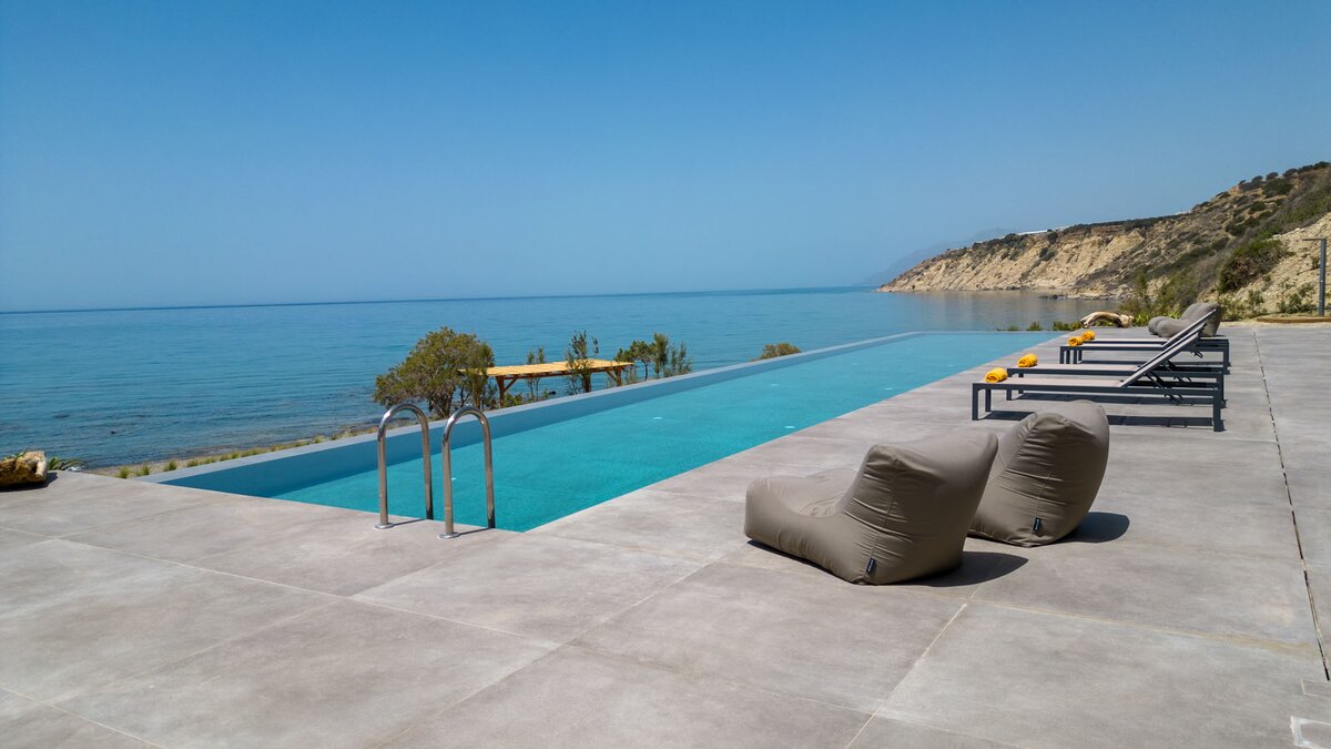 Der Außenbereich ist ein wahres Paradies, das sich nahtlos in die natürliche Schönheit Kretas einfügt. Nur wenige Schritte von der Villa entfernt, können die Gäste ihre Zehen in den weichen Sand des Privatstrandes eintauchen und das kristallklare Wasser des Libyschen Meeres genießen. Denen umliegenden Sanddünen, die mit zarten Sandlilien geschmückt sind, die im August blühen, schaffen eine einzigartige und geschützte Umgebung. Mehrere Terrassen und Sitzbereiche im Freien und bieten perfekte Orte, um im Freien zu speisen, sich zu sonnen oder einfach nur die faszinierende Aussicht zu genießen. Naturliebhaber werden begeistert sein zu wissen, dass der Strand ein Nistplatz für die Meeresschildkröte Caretta Caretta ist, die hier jeden Juni ihre Eier legt und dem Erlebnis der Villa ein Element des ökologischen Wunders verleiht.
