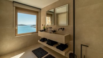 Bei der Ankunft in Nissos View werden die Gäste von einem wunderschön angelegten Garten und einer faszinierenden Aussicht auf das azurblaue Wasser begrüßt. Denen Architektur der Villa verbindet nahtlos modernes Design mit traditionellen kretischen Elementen und schafft einen Raum, der sowohl modern und auch einladend wirkt. Jedes Detail wurde sorgfältig durchdacht, von der hochwertigen Ausstattung bis hin zur geschmackvollen Einrichtung, um einen Aufenthalt zu gewährleisten, der sowohl luxuriös und auch gemütlich ist.