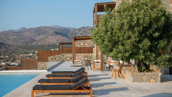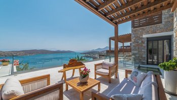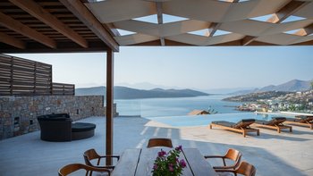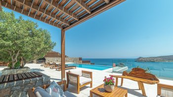 Mit einer unglaublichen Aussicht auf das Meer und die Insel Spinalonga ist die Villa Gaea eine geräumige und moderne Villa für einen Familienurlaub auf Kreta.
