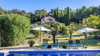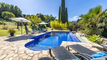 Diese abgeschiedene Finca ist ein romantischer Rückzugsort für zwei Personen oder eine komfortable Familienvilla. Sie liegt in einem weitläufigen Garten mit herrlicher Aussicht und nur 1 km von Campanet entfernt.