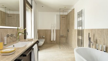 • Die Bäder sind mit Baby-Badeprodukten, Kapuzenhandtüchern und Gummienten ausgestattet.