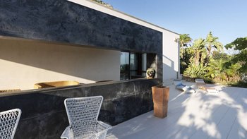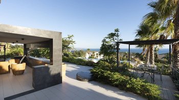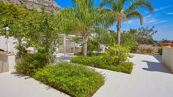 Dieses moderne, von Architekten entworfene Haus liegt in einem Hügel mit Blick auf einen herrlichen und selten besuchten Abschnitt der südlich ausgerichteten Mittelmeerküste. Der wahre Anziehungspunkt dieser Immobilie ist der Außenbereich, mit einer großen gepflasterten Terrasse vor dem Haus, die hinunter zum atemberaubenden privaten Infinity-Pool führt, beide perfekt gelegen, um die unglaubliche Aussicht auf die Küste und das Meer zu genießen. Denen Terrasse, die den Pool umgibt, ist der ideale Ort, um auf einer Sonnenliege mit einem Glas Wein in der Hand zu entspannen. Hübsche mediterrane Gärten flankieren das Anwesen, Rosmarin und Lavendel duften die Luft. Im Zwischengeschoss befindet sich eine zweite teilweise schattige Terrasse, die mit duftenden Sträuchern bepflanzt ist, mit einem Essbereich im Freien und einem Grill, und es gibt auch eine hübsch geflieste Dachterrasse für Panorama-Drinks am Abend.