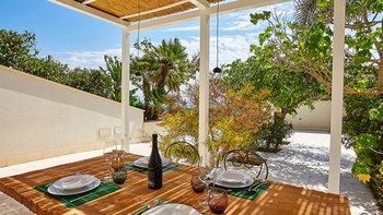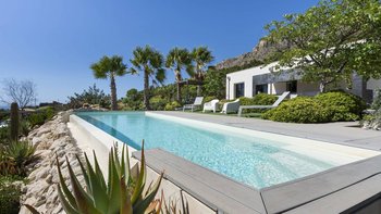Eine gut ausgestattete moderne Villa mit einem atemberaubenden Poolbereich mit Blick auf das Meer. Dieser nach Süden ausgerichtete Villa ist sehr großzügig für eine kleinere Gruppe und liegt in der Nähe des Strandes und der historischen Stadt Sciacca.