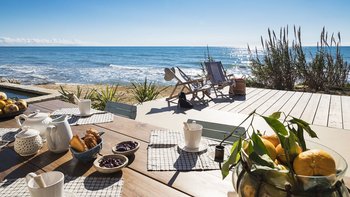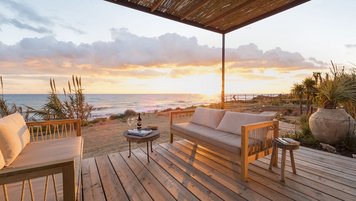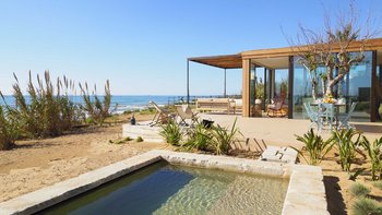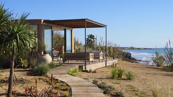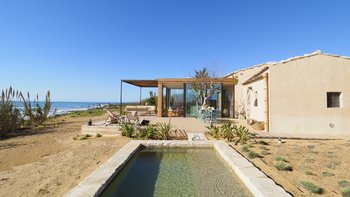 Golden Sands ist ein kleines Haus auf Sizilien, das seinem Namen alle Ehre macht. Es befindet sich in einer wirklich privilegierten Lage mit direktem Zugang zum wunderschönen Mittelmeer. Dieser charmante, nach Süden ausgerichtete Strandhaus ist ein idealer Rückzugsort für zwei Paare oder eine kleine Familie. Es verfügt über Panoramaterrassen, die von einem Sandgarten mit natürlichen Pflanzen und einem einzigartigen Tauchbecken umgeben sind, von dem aus Sie den endlosen Blick auf das Meer genießen können. Dessen offene Wohn- und Esszimmer mit moderner Küchenzeile ist durch raumhohe Fenster und Schiebetüren mit direktem Zugang zur Strandterrasse und zum Essbereich im Freien umgeben.