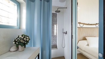 Mit einem rustikal-schicken Dekor, farblich getünchten Wänden, modernen Holzmöbeln, ist diese Villa von den Linien und Farben der Insel inspiriert. Zwei Doppelschlafzimmer, beide mit eigenem Bad mit Dusche, vervollständigen die Residenz. Dessen Meer unterhalb des Anwesens ist über zwei kurze Holzleitern von der Sandterrasse aus erreichbar und ein weiterer breiter Sandstrand kann durch einen Spaziergang ca. 100 m entlang der Küstenstraße zur Rückseite des Anwesens erreicht werden. Golden Sands liegt in der Nähe von Santa Maria del Focallo und all seinen Annehmlichkeiten.