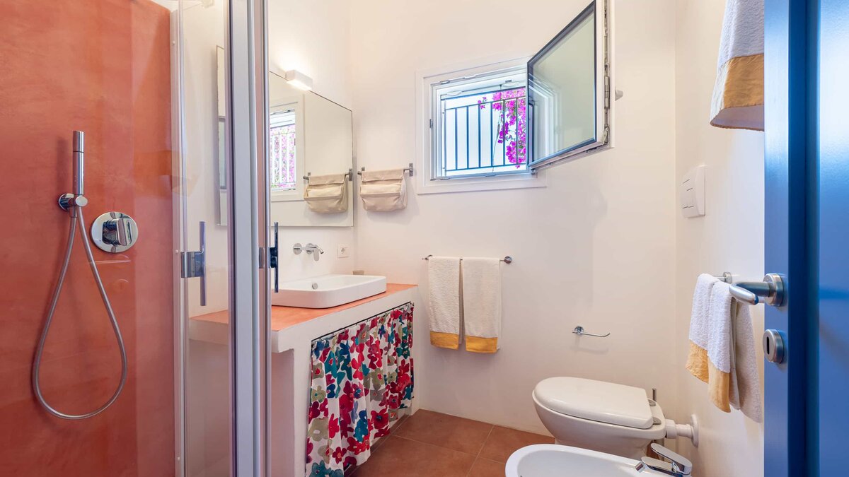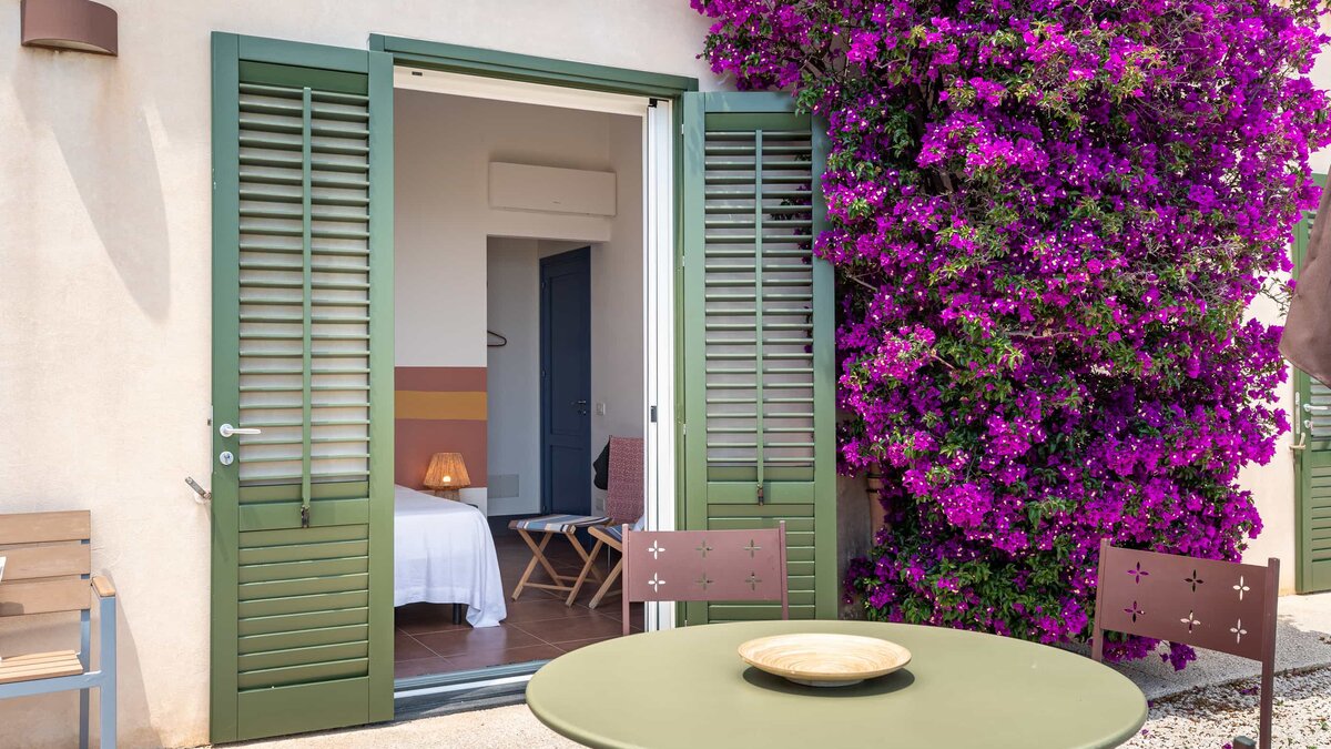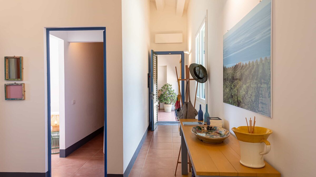 Die Innenräume der Villa strahlen Wärme und Eleganz aus und verbinden ein Boho-Chic-Dekor mit natürlichen Materialien wie Holz und Stein. Die helle und luftige Villa Belice verfügt über drei geräumige Schlafzimmer, jedes mit Meerblick und französischen Türen, die sich direkt zum Garten öffnen. Der Wohnbereich ist gemütlich und stilvoll, mit farbenfrohen Stoffen und Vintage-Designelementen geschmückt. Eine voll ausgestattete Küche mit modernen Geräten wie Geschirrspüler und Elektroherd sorgt für Komfort.