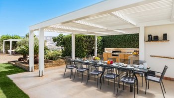 • Außenküche mit Grill, Herd, Spüle und Vorbereitungsplatz