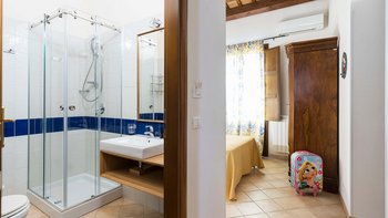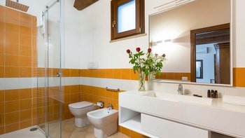 La Costa ist ein weitläufiges Haus mit Dachsparrendecken und freiliegenden Steinmauern und blickt auf ländliche Ausblicke, die dem Begriff „Bilderfenster“ eine wörtliche Bedeutung verleihen. Dessen Villa ist wunderbar für große Zusammenkünfte geplant und verfügt über acht klimatisierte Schlafzimmer, die wunderschön mit edlem Holz und lokaler Bettwäsche eingerichtet sind; ein kühles weißes Esszimmer mit modernen Möbeln auf einem alten Steinboden; und ein sehr geräumiges Wohnzimmer, das in zwei Bereiche unterteilt ist und in stilvollem Monochrom gestaltet ist, mit sizilianischer Keramik für erdige, künstlerische Akzente.