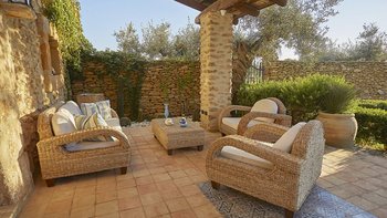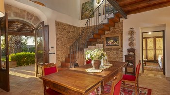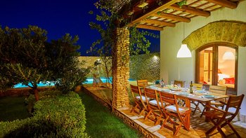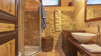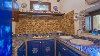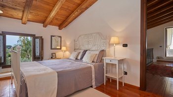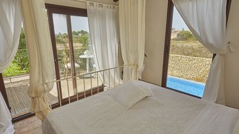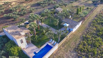 Diese charmante Steinvilla und das angrenzende Nebengebäude sind ideal für einen gemeinsamen Urlaub mit zwei Gruppen, die jedoch etwas Privatsphäre benötigen. Deren Villa öffnet sich in einen doppelten Eingangsbereich und einen Essbereich mit Kamin und eine Treppe führt hinauf in das Zwischengeschoss, wo sich ein Wohnbereich und zwei Doppelschlafzimmer befinden. Im Erdgeschoss gibt es ein Wohnzimmer und eine hübsche Küchenzeile. Draußen gibt es eine schattige Veranda mit traditionellen, sizilianischen Lehmdachziegeln mit einem Essbereich und weichen Sitzgelegenheiten, der perfekte Ort, um bei einem abendlichen Drink zu entspannen.