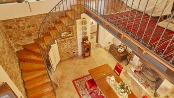 • Treppe zum Zwischengeschoss über der Eingangshalle